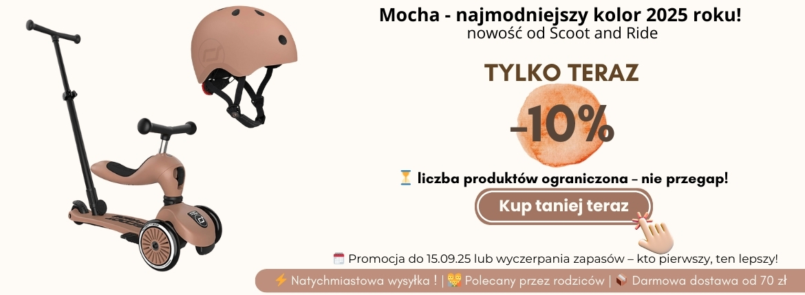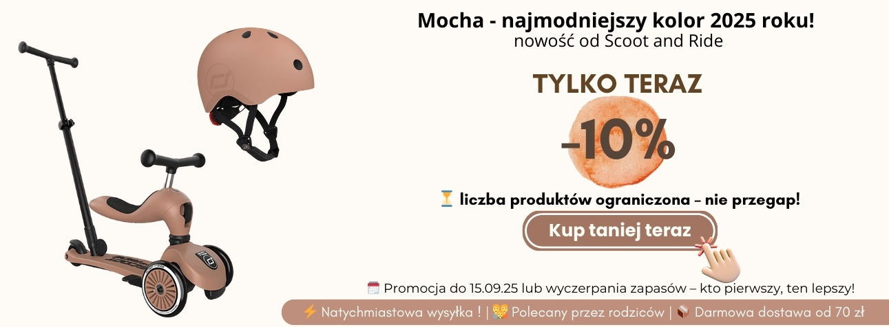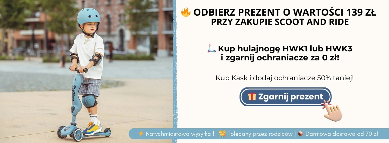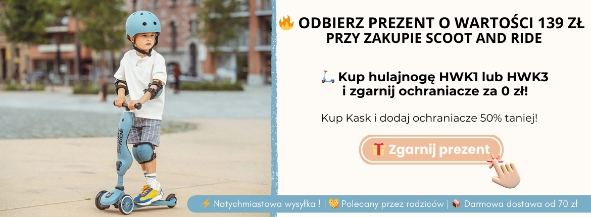 Nie lada gratkę znajdą w naszym sklepie z zabawkami mali pasjonaci aktywnego wypoczynku. To z myślą o nich oferujemy hulajnogi i jeździki Scoot and Ride – oryginalne, bezpieczne i różnorodne, o których jakości zdążyło przekonać się już wielu zadowolonych klientów. Trzykołowa dla początkujących maluchów? A może dziecięca — dla smyków, które zdążyły nabyć już pewne umiejętności jeździeckie? Szeroka oferta modeli od Scoot and Ride z pewnością pozytywnie Cię zaskoczy.