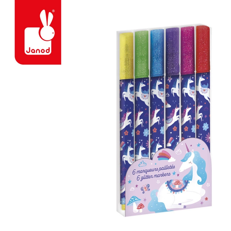 Brokatowe flamastry kolorowe Janod – kreatywny zestaw dla dzieci 6+