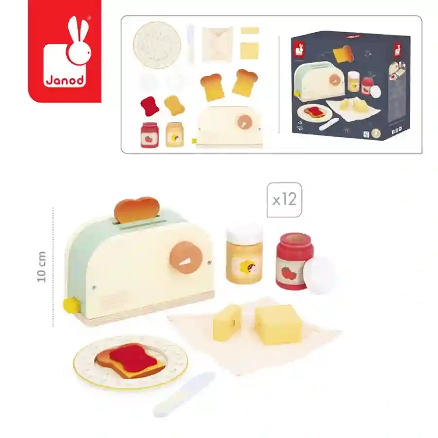 Drewniany zestaw śniadaniowy z tosterem Janod – kreatywna zabawa i nauka