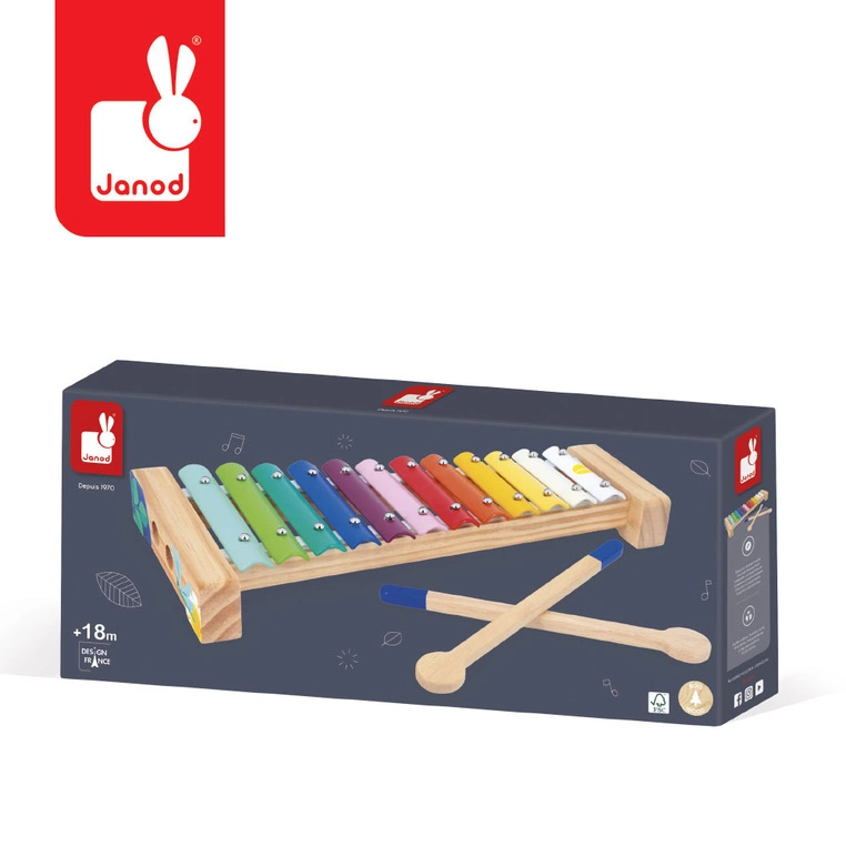Bezpieczeństwo i jakość – ksylofon wykonany z drewna FSC i atestowany zgodnie z normami EN71/CE, zapewnia spokojną zabawę bez toksyn. Rozwój muzyczny i emocjonalny – instrument wspiera naukę rytmu, słuchu i kreatywność, a jednocześnie pomaga dziecku wyrażać emocje. Estetyka i design – kolorowe klawisze i oryginalne motywy sprawiają, że ksylofon cieszy oko i doskonale pasuje do dziecięcego wnętrza. Idealny na prezent – piękne opakowanie i francuska jakość czynią z niego wyjątkowy upominek na każdą okazję.