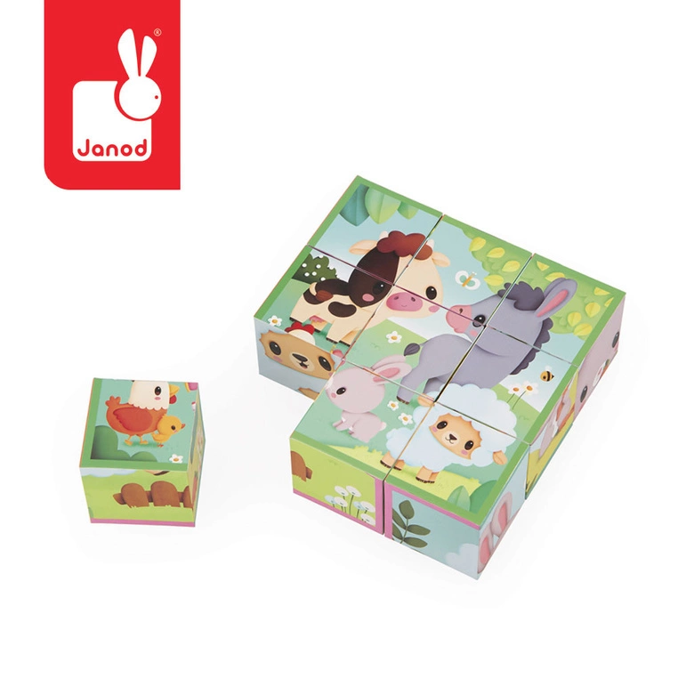 Janod – Klocki Układanka Farma | 9 elementów, 6 obrazków