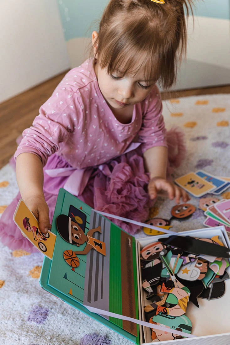 Magnetyczna układanka Magnetibook Sporty jest nie tylko doskonałą formą rozrywki, ale także stymuluje zmysł artystyczny dzięki pięknie wykonanym magnesom. Kolorowe detale przyciągają wzrok i rozbudzają wyobraźnię dzieci.