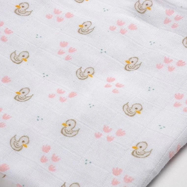 Pieluszki wykonane są w 100% z organicznego muślinu bawełnianego, który posiada certyfikaty Oekotex oraz GOTS. Jego otwarty splot i lekkość gwarantują tzw. oddychanie tkaniny, zmniejszają ryzyko przegrzania dziecka, zapewniają doskonałą wentylację i komfort. Materiał został „wyczesany”, dzięki czemu jest wyjątkowo miękki w dotyku i bardzo przyjemny dla skóry.