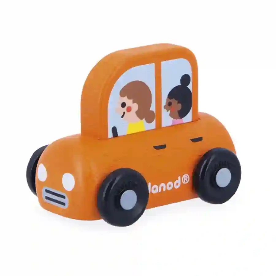 Pojazd drewniany samochód rodzinny Janod – pomarańczowy, dla dzieci 12m+