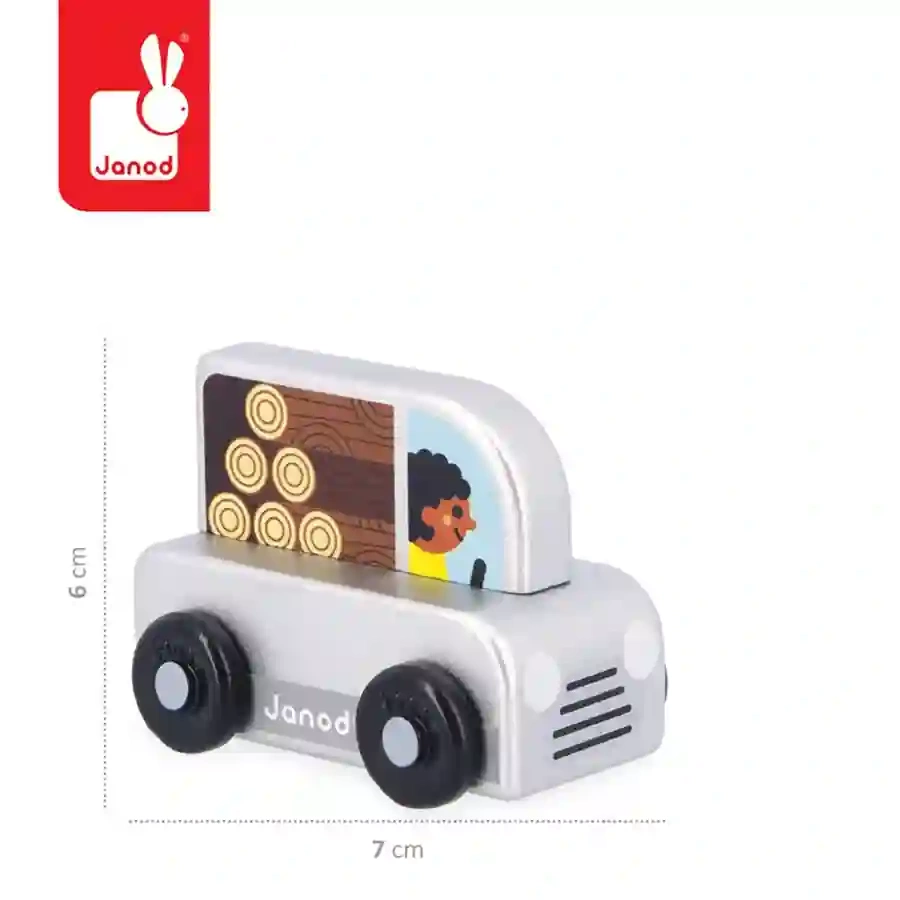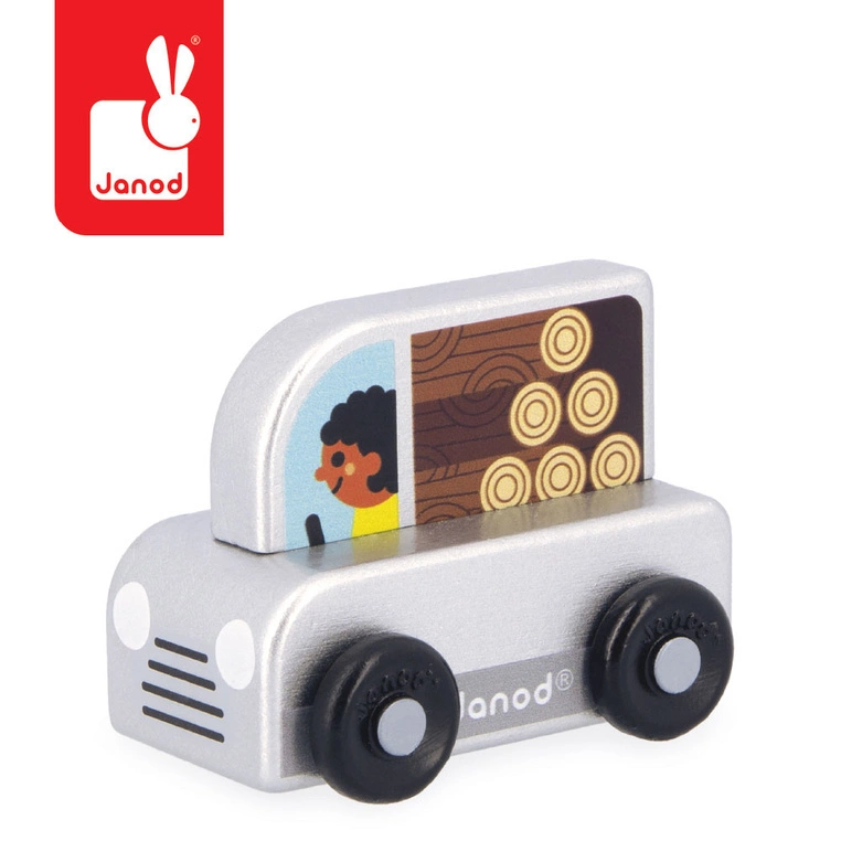Samochód terenowy drewniany Janod Cross Roads – szary pick-up dla dzieci 12m+
