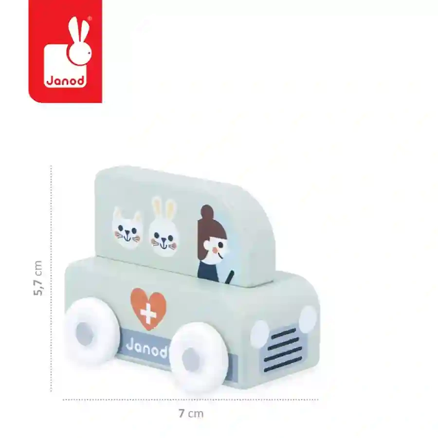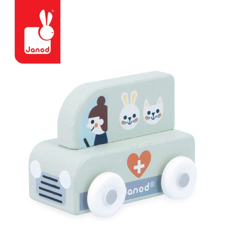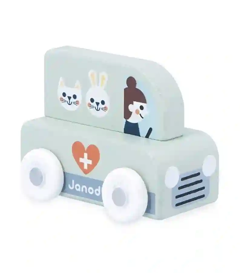 Pojazd Samochód weterynarza Janod Cross Roads – jasnoniebieski, drewniany