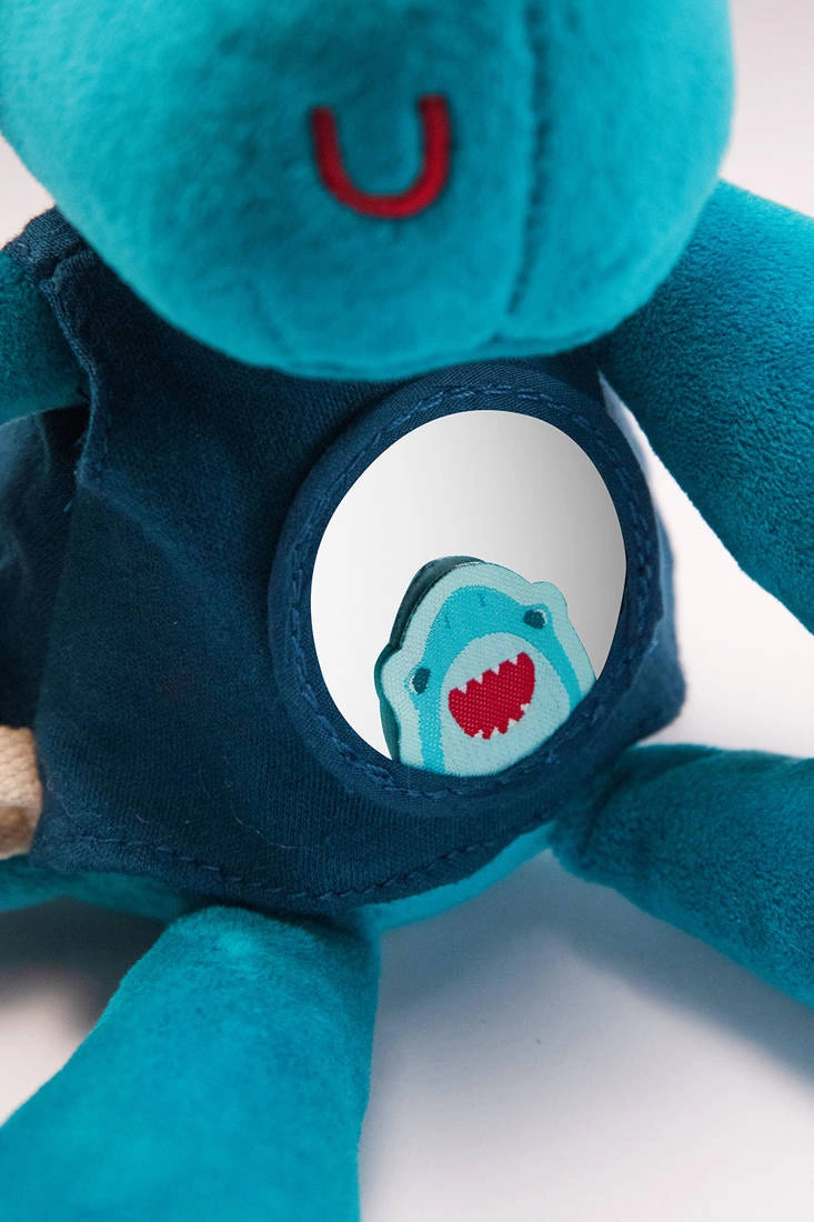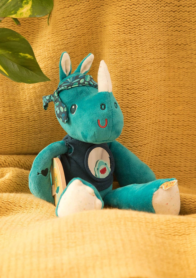 Na brzuszku nosorożca znajduje się bezpieczne, giętkie lusterko z naszywką rekina. To interaktywny element, który zapewni dziecku wiele frajdy podczas odkrywania swojego odbicia w lusterku.