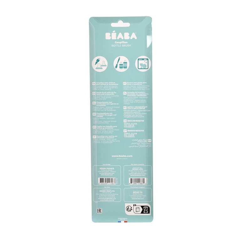 Szczotka dostępna jest w odcieniu Sage Green. Możesz skompletować zestaw z innymi akcesoriami Beaba w tym samym kolorze, tworząc spójny i estetyczny zestaw do pielęgnacji niemowlęcia.