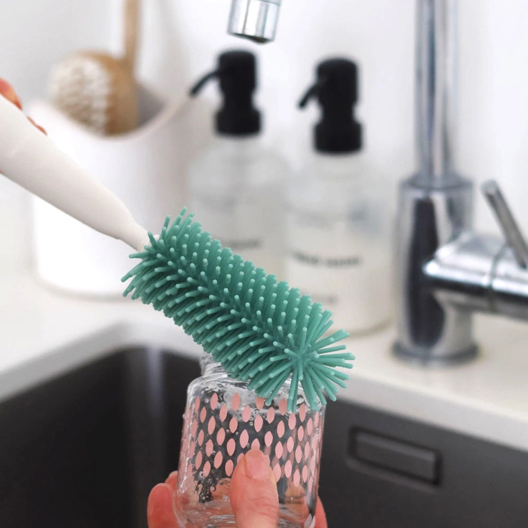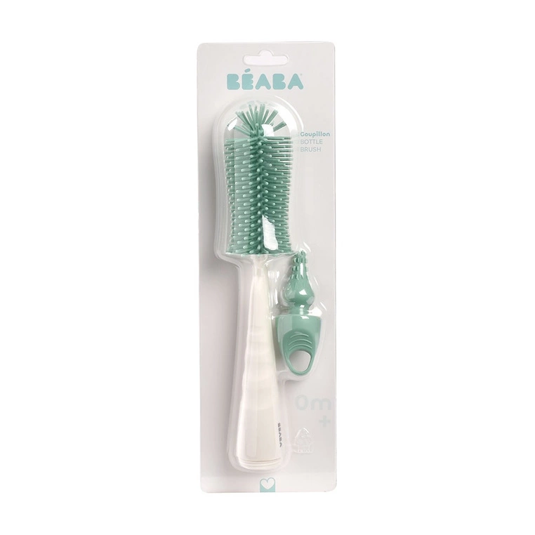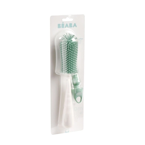 Silikonowa szczotka do butelek i smoczków Beaba – Sage Green, 0m+
