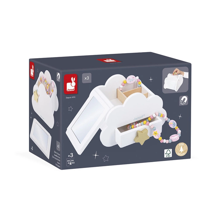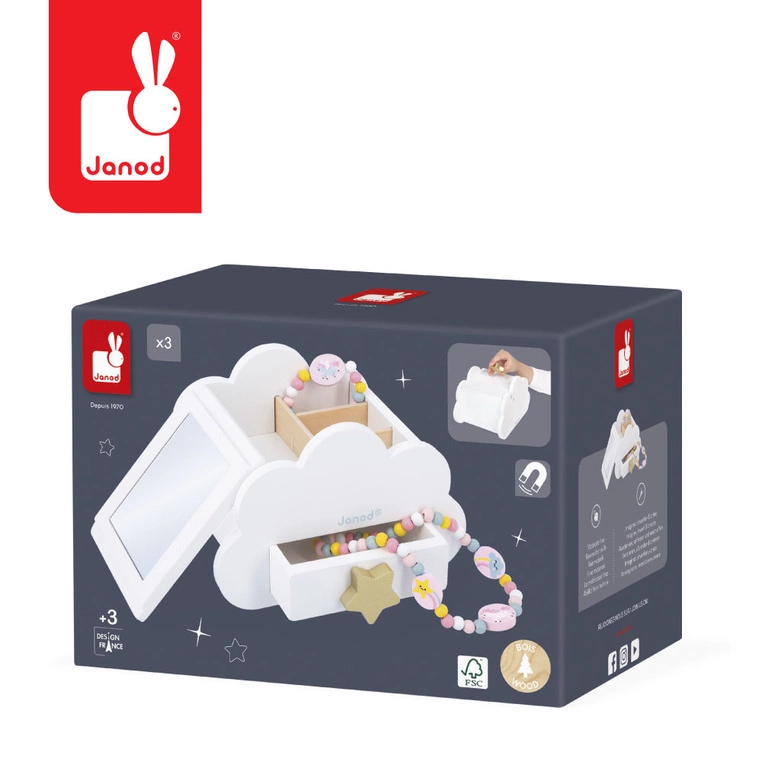 Produkty Janod to synonim bezpieczeństwa i jakości. Szkatułka wykonana jest z drewna pochodzącego z odpowiedzialnych źródeł (FSC), nie zawiera toksycznych substancji, a jej powierzchnia została starannie wykończona, by nie stanowić zagrożenia dla dzieci. Posiada certyfikaty EN71/CE oraz REACH, potwierdzające zgodność z europejskimi normami bezpieczeństwa zabawek. Pozytywne opinie rodziców oraz wieloletnie doświadczenie marki Janod sprawiają, że produkt można polecić każdemu, kto szuka pięknej, funkcjonalnej i bezpiecznej zabawki dla dziecka.
