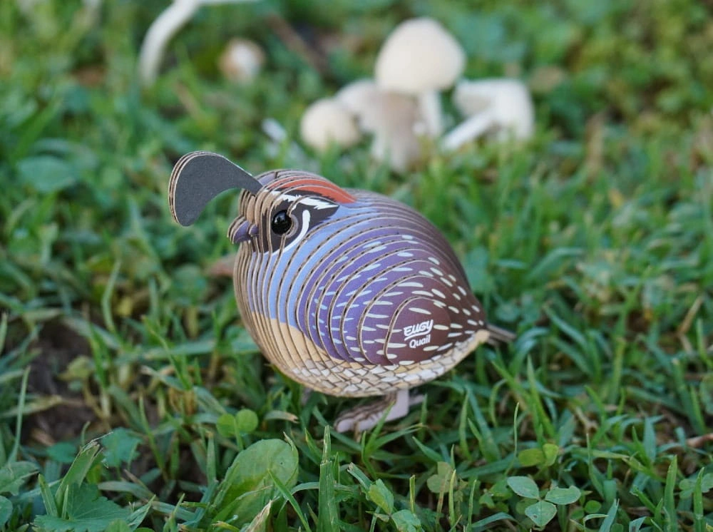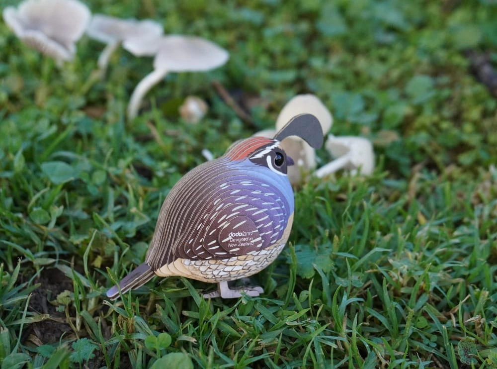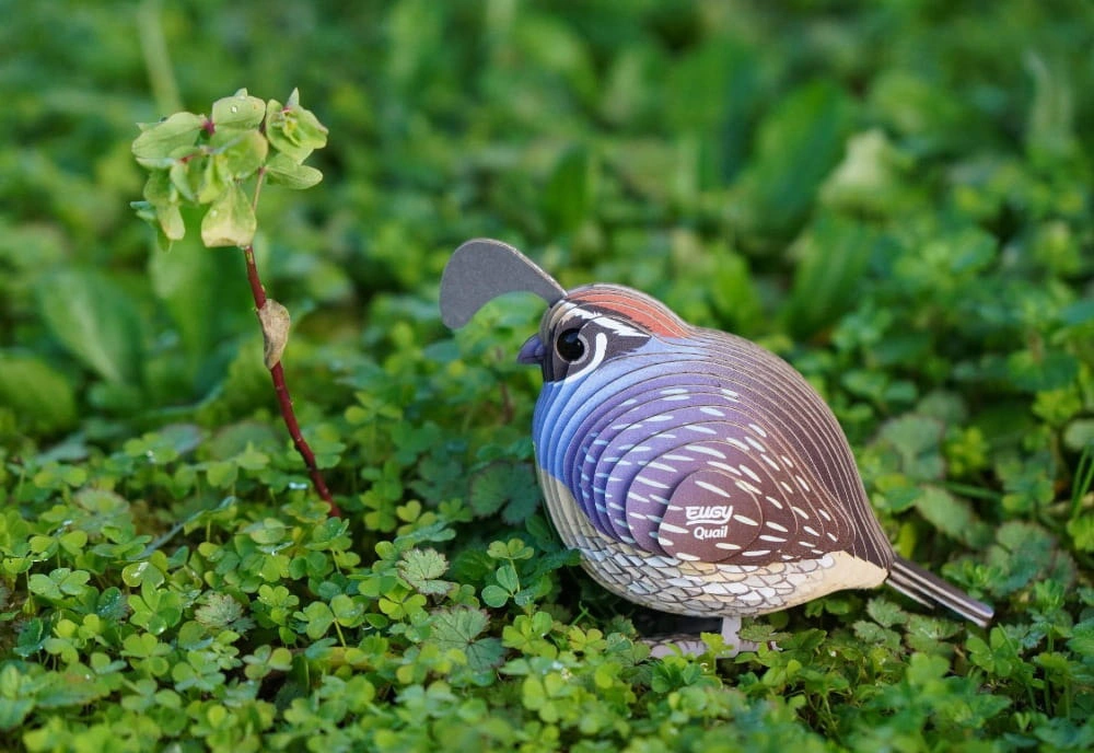 Choć większość przepiórek migruje, kalifornijska przepiórka czubata pozostaje na miejscu i komunikuje się z innymi osobnikami za pomocą donośnych okrzyków. Teraz możesz mieć jej miniaturową wersję u siebie!