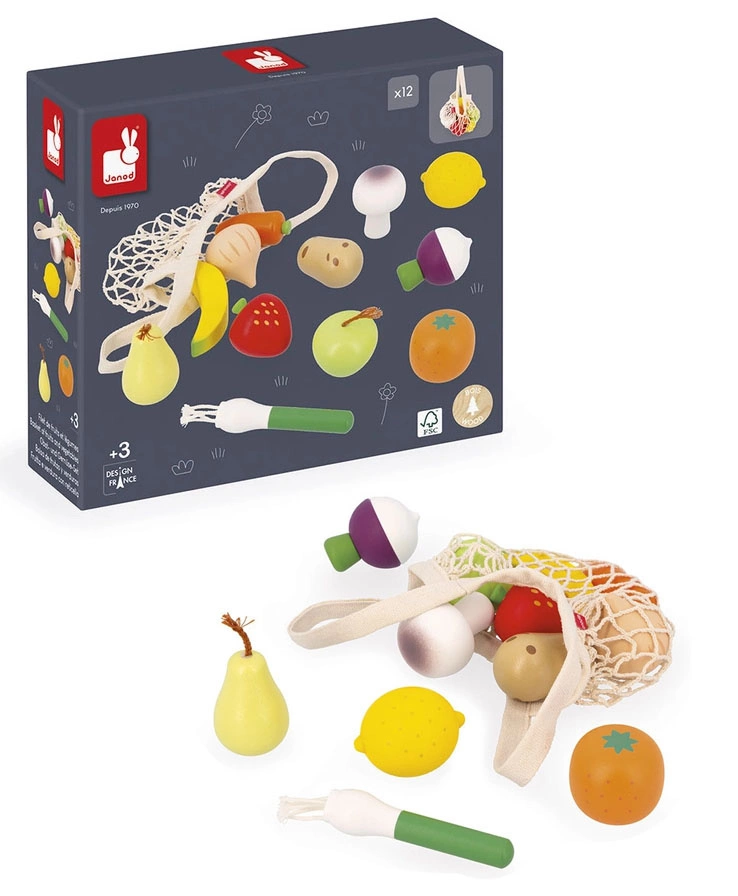 Drewniany zestaw warzyw i owoców Janod – kreatywna zabawa dla dzieci 3+