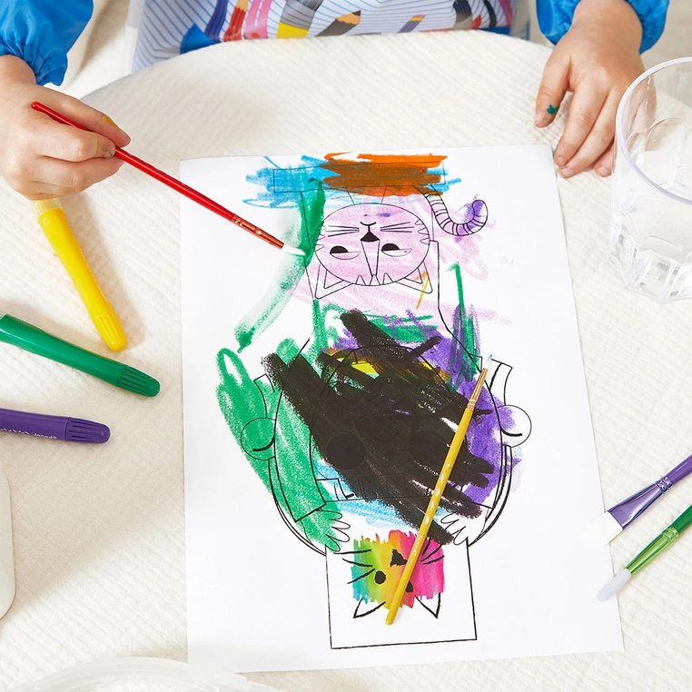Kredki żelowe Janod wyróżniają się nasyconymi barwami, które przyciągają uwagę i zachęcają do twórczych eksperymentów. Ich szeroka, wyprofilowana końcówka ułatwia malowanie zarówno dużych powierzchni, jak i precyzyjne rysowanie detali. Dziecko może korzystać z kredek na suchym papierze, a po dodaniu odrobiny wody uzyska efekt malowania akwarelami. To doskonała okazja do nauki mieszania kolorów i poznawania różnych faktur. Kredki nie brudzą rąk, są łatwe do zmycia z większości powierzchni i ubrań, co daje rodzicom poczucie komfortu i bezpieczeństwa podczas zabawy. Dzięki temu dziecko może swobodnie rozwijać swoje umiejętności artystyczne, a rodzic ma pewność, że zabawa jest czysta i bezproblemowa.