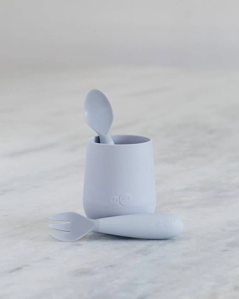 Komplet silikonowych sztućców Mini Utensils – pastelowa szarość