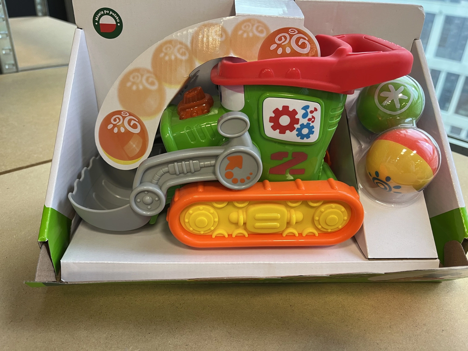 Ten kolorowy buldożer przyciąga uwagę dzieci żywymi barwami i przyjaznym wyglądem. Zabawka została zaprojektowana z myślą o najmłodszych, dlatego jej kształty są zaokrąglone, a elementy odpowiednio duże i bezpieczne do trzymania przez małe rączki. Interaktywne funkcje, takie jak żonglowanie piłeczkami, ruchoma łopata oraz dźwięki i światełka, pobudzają zmysły i zachęcają do wielokrotnego powtarzania zabawy. Dzięki możliwości przesuwania buldożera do przodu i do tyłu, dziecko uczy się planowania ruchów, precyzji oraz cierpliwości. Wesoła piosenka w języku polskim oraz migające światełko dodatkowo wzbogacają doświadczenie, sprawiając, że każda zabawa staje się wyjątkowym przeżyciem. To idealny wybór dla rodziców, którzy chcą wspierać rozwój sensoryczny i poznawczy swojego dziecka w atrakcyjny sposób.
