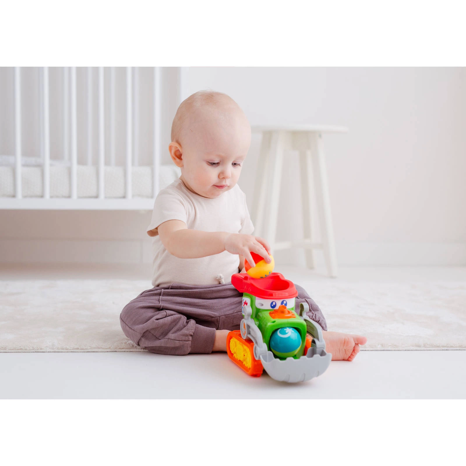 Produkt dostępny jest w jednej, uniwersalnej wersji kolorystycznej – wielokolorowy buldożer z zestawem piłeczek. Brak innych wariantów rozmiaru lub wzoru.